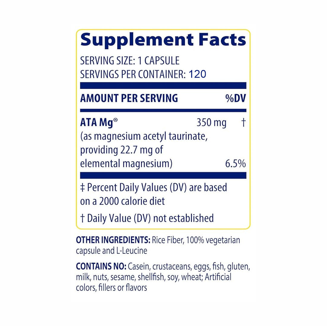 Combina magnesio con taurina, un aminoácido utilizado por el cuerpo para transferir iones de magnesio a las células. ATA MgⓇ ofrece una absorción superior en el cerebro y las células neuronales, mejorando la penetración en la barrera hematoencefálica y la absorción intestinal.